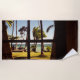 Scène de plage tropicale Fiji Beach - Photo d'une plage aux Fidji avec palmiers, hamacs et banc de pique-nique vu à travers les volets ouverts d'une cabane de plage. © Alan Harman Photography 2004. Tous droits réservés. www.alanharmanphotography.com 120418 serviette de plage