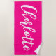 Créez votre propre serviette de plage personnalisée rose vif pour sa chambre dortoir ou sa pause printemps. Customisez l'arrière - plan vibrante avec sa couleur préférée. Le nom comporte un style de calligraphie de script écrit à la main blanc moderne.