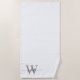 Serviette De Plage Script élégant Moderne Blanc Gris Monogramme Nom