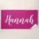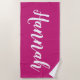 Personnalisez cette serviette de plage en calligraphie script amusante et tendance avec votre nom! C'est la version fuchsia sombre. Idéal pour vos vacances d'été, fêtes de bachelorette, camp d'été pour enfants ou vacances de printemps !