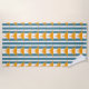 Soleil orange jaune soleil sur bandes turquoises blanches.