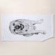 Soufflé d’une tonalité en noir et blanc, le sourire de ce Labrador devient un message radieux à travers une serviette. Un compagnon parfait pour des aventures ensoleillées, ajoutant de la joie à chaque plage ou salon au bord de la piscine.