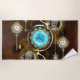 Turquoise lenses with antique watch with brass gears and golden keys on rusty, brown background. Steampunk style.