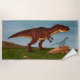 Un Tyrannosaurus Rex et le Velociraptor font un tour à travers un champ herbeux.