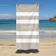 Taupe moderne Beige Striped Nom Plage Serviette.