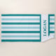 Serviette de plage turquoise en bande avec nom per