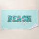Cette serviette de plage de style rétro des années 1970 est le compagnon idéal pour vos aventures sur la plage. Cette serviette est ornée d'un arrière - plan bleu aqua pastel apaisant qui complète magnifiquement le texte coloré de la "Plage". Le texte, dans les tons pastel bleu aqua, rose et jaune, n'est pas seulement un mot mais un collage d'adorables images sur le thème de la plage. Des palmiers mignons aux fleurs d'hibiscus en passant par les coquillages, le transat et le parasol, chaque détail ajoute au charme de cette serviette. Sous le texte "Plage", vous trouverez le mot "vie" écrit avec élégance dans un joli rose pastel, ajoutant une touche de sophistication. Avec sa vibe boho féminine, cette serviette est plus qu’un simple accessoire de plage, c’est un témoignage de votre amour pour la vie à la plage. Que vous soyez en train de bronzer, de pique-niquer ou de vous sécher après une baignade, cette serviette apportera une touche de style à votre routine de plage.
