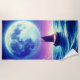 Cette serviette de plage a une immense lune et un bateau qu'on y voit.