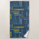 Créez une serviette de plage très personnalisée. Votre nom personnalisé apparaît partout sur cette serviette dans un collage de différentes polices et styles de lettres. Le lettrage turquoise, vert menthe, bleu et jaune est placé contre un arrière - plan bleu marine. Ce style convient parfaitement aux noms de longueur moyenne de 5 à 8 lettres pour des noms plus courts ou plus longs, voir les autres modèles de cette collection.
