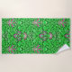 Serviette de plage dans un vintage William Morris motif de jacinthes, tulipes et feuilles, dans les tons vert citron, accentué de rose fuchsia et blanc, sur un profond arrière - plan vert émeraude