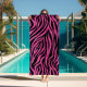 Élégante serviette de plage motif moderne rose chaud et noir zèbre imprimé. Correspondance d'articles dans notre magasin.