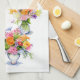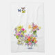 fleurs et papillons d'aquarelle sur une serviette de thé.