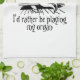 Une serviette de thé montrant un organiste en train de sauter à son instrument, avec les mots "Je préfère jouer à mon orgue" ci-dessous. Un cadeau pour un organiste qui se voit souvent confier la tâche de sécher les plats !