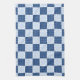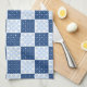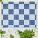 Serviette de cuisine Wintry avec flocons de neige et glace dans un motif en damier bleu et blanc.