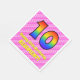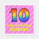 Cette serviette en papier de 10ème anniversaire, optimisée et joyeuse, est dotée d'un grand nombre de "10" dont le motif coloré est inspiré par l'aspect d'un arc-en-ciel. Il comporte également le message "Joyeux 10e anniversaire", suivi d'un nom personnalisé. L'arrière - plan est doté d'un motif rayé rose clair et rose foncé, aux coeurs roses aimés. Des serviettes en papier personnalisées et amusantes comme celle-ci pourraient être utilisées lors d’une célébration pour célébrer le dixième anniversaire de quelqu’un. [~Z0000417]
