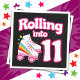 Ce design de fête de patinage est parfait pour une fête de patinage à rouleaux ou un thème d'anniversaire pour une fille de 11 ans. Si la fille d'anniversaire aime le roller skate, elle ADORE ce skate party design! Caractéristiques style rétro 'Rolling in 11' anniversaire citation avec roller cool graphique avec arc-en-ciel & étoiles qui est amusant et unique. Fun roller skate design pour le 11e anniversaire d'une fille!