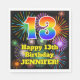Cette conception passionnante et amusante de serviette en papier d'anniversaire comprend un grand nombre de "13" avec un dégradé coloré de spectre arc-en-ciel inspiré motif, avec le message "Joyeux 13e anniversaire," et un nom modifiable. L'arrière - plan présente un motif coloré inspiré par l'allure d'un feu d'artifice festif éclatant. Des serviettes en papier colorées comme celle-ci peuvent être amusantes à utiliser lors d’une fête organisée en l’honneur du 13e anniversaire de quelqu’un. [~Z0000574]