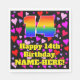 Cette serviette en papier colorée et joyeuse à thème d'anniversaire comporte un grand nombre de "14" avec un dégradé arc-en-ciel inspiré motif, avec le message "Happy 14th Birthday," et un nom modifiable. L'arrière - plan présente un motif aux formes de coeur rose, rouge et violet. Des serviettes en papier amicales et amusantes comme celle-ci peuvent être amusantes à avoir lors d’une fête d’anniversaire qui a lieu pour célébrer le 14e anniversaire de quelqu’un. [~Z0000550]