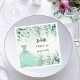 Un arrière - plan blanc. Décoré de verdure d'eucalyptus et de fougères de bois. Personnalisez et ajoutez un nom, une date. Le nom est écrit avec un script de style moderne écrit à la main.