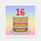 Cette serviette en papier à thème d'anniversaire joyeuse et joyeuse présente une représentation de dessin animé d'un gâteau d'anniversaire à trois niveaux avec des bougies en forme de chiffres sur le dessus montrant le numéro "16", avec le message "HAPPY 16TH BIRTHDAY," et un nom de destinataire personnalisé. L'arrière - plan dispose d'un motif multicolore pastel en arc-en-ciel inspiré du spectre dégradé. Des serviettes en papier sur le thème de l’anniversaire comme celles-ci pourraient être utilisées lors d’une fête d’anniversaire célébrant le 16e anniversaire de quelqu’un. [~Z0000623]