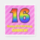 Ce design amusant et joyeux de serviette en papier sur le thème du 16ème anniversaire comprend un grand nombre de "16" ayant un motif coloré inspiré par l'apparence d'un spectre arc-en-ciel. Il comporte également le message "Joyeux 16e anniversaire", et un nom modifiable. L'arrière - plan est doté d'un motif rayé rose clair et rose foncé, aux coeurs roses aimés. Des serviettes en papier sur le thème de l’anniversaire comme celle-ci pourraient être utilisées lors d’une fête célébrant le seizième anniversaire de quelqu’un. [~Z0000417]