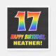Cette serviette de papier d'anniversaire joyeuse, colorée et amusante est dotée d'un grand nombre de "17" et du message "HAPPY BANTHDAY", tous deux dotés d'une couleur motif inspirée par un gradient de spectre arc-en-ciel, ainsi que d'un nom de destinataire personnalisé jaune gras. L'arrière - plan est noir de couleur. Des serviettes en papier sur le thème de l’anniversaire amusantes et personnalisées comme celle-ci pourraient être utilisées lors de la célébration du 17e anniversaire de quelqu’un. [~Z0000476]
