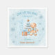 Les serviettes en papier de Noël 1er anniversaire pour un bébé garçon portaient un adorable homme en pain d'épice, un arbre de Noël, un cadeau et des flocons de neige, le tout en bleu et beige bébé. Personnaliser facilement le texte - Kate Eden Art