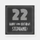 Cette serviette en papier à thème d'anniversaire, inspirée et de style vintage des années folles, est décorée d'un grand modèle Art Déco inspiré du numéro "22", du message "HAPPY 22nd BIRTHDAY", d'un nom personnalisable et d'un motif de bordure composé de lignes. Des serviettes en papier customisées et amusantes comme celle-ci pourraient être utilisées lors d’une célébration d’anniversaire en l’honneur du vingt-deuxième anniversaire de quelqu’un. [~Z0000395]
