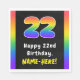Ce modèle de serviette en papier d'anniversaire audacieux et optimisé comprend le numéro "22" avec un motif dégradé multicolore inspiré du spectre arc-en-ciel, ainsi que le message "Joyeux 22e anniversaire", et un nom de destinataire personnalisé. Des serviettes en papier sur le thème de l’anniversaire comme celles-ci pourraient être utilisées lors d’une fête d’anniversaire célébrant le vingt-deuxième anniversaire de quelqu’un. [~Z0000629]