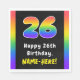 Ce design de serviette en papier à thème d'anniversaire optimisé et audacieux comprend un grand nombre de "26" ayant un motif dégradé multicolore inspiré du spectre arc-en-ciel, ainsi que le message "Joyeux 26e anniversaire", et un nom de destinataire personnalisé. Des serviettes en papier sur le thème de l’anniversaire, comme celles-ci, pourraient être utilisées lors d’une fête célébrant le vingt-sixième anniversaire de quelqu’un. [~Z0000629]