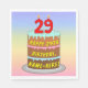Cette serviette en papier d'anniversaire joyeuse et colorée présente une représentation en bande dessinée d'un gâteau d'anniversaire à trois niveaux avec des bougies en forme de chiffre sur le dessus montrant l'âge "29", avec le message "HAPPY 29TH BIRTHDAY," et un nom de destinataire personnalisé. L'arrière - plan a un motif multicolore pastel en arc-en-ciel inspiré du spectre dégradé. Des serviettes en papier comme celles-ci pourraient être utilisées lors d’une fête d’anniversaire organisée pour célébrer le vingt-neuvième anniversaire de quelqu’un. [~Z0000623]