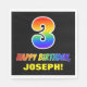 Cette serviette de papier d'anniversaire joyeuse, amusante et colorée présente un grand nombre de "3" et le message "HAPPY BANTHDAY", tous deux dotés d'une couleur motif inspirée du gradient de l'arc-en-ciel, ainsi qu'un nom de destinataire personnalisé jaune gras. L'arrière - plan est noir de couleur. Des serviettes en papier sur le thème de l’anniversaire comme celle-ci peuvent être amusantes à utiliser lors d’une fête organisée pour célébrer le 3e anniversaire de quelqu’un. [~Z0000476]