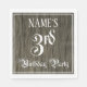 Ce design luxueux et élégant de serviette en papier à thème d'anniversaire comporte un nom personnalisé et le message "3ème anniversaire fête". Le grand numéro "3ème" et les mots "fête d'anniversaire" sont en texte élaboré de style script, et l'arrière - plan a un motif imitation/imitation bois inspiré. Des serviettes en papier élégantes et ornées comme celle-ci pourraient être utilisées lors d’une fête d’anniversaire organisée pour célébrer le 3e anniversaire de quelqu’un. [~Z0000564]