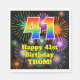 Cette conception joyeuse et amusante de serviette en papier à thème d'anniversaire dispose d'un grand nombre de "41" ayant un coloré dégradé de spectre arc-en-ciel inspiré motif. Il comporte également le message "Joyeux 41e anniversaire", et un nom personnalisé. L'arrière - plan présente un motif passionnant et coloré, inspiré par l'apparition de feux d'artifice festifs éclatants. Des serviettes en papier colorées sur le thème de l'anniversaire comme celle-ci pourraient être utilisées à une fête d'anniversaire pour quelqu'un qui célèbre son quarante et unième anniversaire. [~Z0000574]