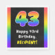 Ce dessin animé et attrayant de papier d'anniversaire est doté d'un grand numéro "43" avec un motif multicolore inspiré du spectre arc-en-ciel multicolore, avec le message "Happy 43rd Birthday," et un nom de destinataire modifiable. Des serviettes en papier comme celles-ci pourraient être utilisées à une fête pour quelqu'un qui célèbre son 43e anniversaire. [~Z0000629]