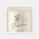 Élégante et chic serviettes personnalisées de fête du 50e anniversaire avec "50 & Fabulous" écrit en écriture stylisée contre un arrière - plan de champagne en faux feuille d'or, avec de l'or faux parties scintillant dégoulinant du haut. Vous pouvez personnaliser avec son nom et la date de la fête.
