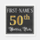 This ornate and elegant birthday themed paper napkin design features a personalized name and the message “50th Birthday Party”. The large number “50th” has an imitation/faux gold-inspired coloring pattern, and the words “Birthday Party” are in luxurious script-style text. The background is colored black by default (although it can be customized). Luxurious, opulent paper napkins like this might be useful to have at a birthday celebration/party being held to honor somebody’s fiftieth birthday. [~Z0000565]