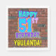 Cette conception amusante de serviette en papier sur le thème de l'anniversaire comporte le message "HAPPY 51ST BANTHDAY", ayant une apparence colorée, vibrante, graffiti et art urbain inspiré, avec un nom de destinataire personnalisé. L'arrière - plan dispose d'un motif inspiré de l'aspect d'un mur en brique. Des serviettes en papier sur le thème de l'anniversaire vibrantes, amusantes et personnalisées comme celle-ci pourraient être utilisées à une fête d'anniversaire pour quelqu'un qui fête son cinquante et unième anniversaire. [~Z0000534]
