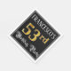 This opulent and luxurious birthday themed paper napkin design features an editable name and the message “53rd Birthday Party”. The large number “53rd” has an imitation/faux gold-inspired coloring pattern, and the words “Birthday Party” are in elegant script-style text. The background is colored black by default (although it can be customized). Ornate, fancy paper napkins like this might be useful to have at a birthday party/celebration being held to honor somebody’s fifty third birthday. [~Z0000565]