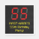 Ce design de serviette en papier à thème d'anniversaire sot et geek comporte un grand nombre de "55" avec une apparence de style d'affichage numérique à sept segments rouge, avec un nom personnalisable et le message "55e anniversaire fête!" en texte jaune geek, sur un arrière - plan de couleur noire. Des serviettes en papier sur le thème de l’anniversaire amusantes et personnalisées comme celle-ci pourraient être utilisées lors de la célébration du 55e anniversaire de quelqu’un. [~Z0000388]