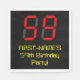 Ce design de serviette d'anniversaire geek et nerdy comporte un grand nombre de "59" avec un affichage numérique à sept segments rouge inspiré, avec un nom personnalisé et le message "59e fête d'anniversaire !" dans un texte jaune geek, sur un arrière - plan de couleur noire. Des serviettes en papier sur le thème de l’anniversaire amusantes et personnalisées comme celle-ci pourraient être utilisées lors de la célébration du cinquantenaire de quelqu’un. [~Z0000388]