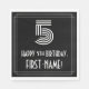 Cette serviette en papier d'anniversaire inspirée du style des années 1920-1930 présente un grand style Art déco inspiré du numéro "5", le message "HAPPY 5th BIRTHDAY", un nom personnalisé, et un motif frontalier composé de lignes. Des serviettes en papier personnalisables et amusantes comme celle-ci pourraient être utilisées lors d’une fête organisée pour célébrer le cinquième anniversaire de quelqu’un. [~Z0000395]
