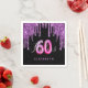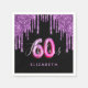 Une serviette en papier tendance et glamour pour 60ème anniversaire. Un arrière - plan noir classique décoré avec des gouttes de parties scintillant couleur violet foncé, la peinture goutte à goutte. Avec le texte : 60 et fabuleux. Personnalisez et ajoutez un nom. Texte de couleur violet et rose-chaud. Le mot Fabulous est écrit avec un script de style moderne écrit à la main. Age 60 est écrit avec un script de style ballon.