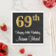 Ce design luxueux, sophistiqué et élégant de serviette en papier à thème d'anniversaire comporte un grand numéro ordinal "69ème" avec un motif dégradé faux/imitation or, en plus du message de voeux d'anniversaire "69ème anniversaire heureux", et un nom personnalisé dans une police de style script. L'arrière - plan est noir de couleur. Des serviettes en papier comme celle-ci peuvent être utilisées pour célébrer le soixante-neuvième anniversaire de quelqu’un. [~Z0000516]