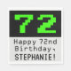 Cette conception de serviette en papier à thème d'anniversaire amusant et nerdy comprend un grand numéro de 8 bits de style informatique vert "72" sur un arrière - plan de couleur noire. Il comporte également le message de voeux d'anniversaire "Joyeux 72e anniversaire", et un nom personnalisé. Des serviettes en papier amusantes et geeky comme celle-ci pourraient être utilisées lors d'une fête organisée pour célébrer le soixante-douzième anniversaire d'un programmeur informatique, d'un ingénieur ou d'une personne qui apprécie les jeux rétro-informatiques. [~Z0000404]