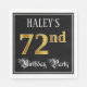 Cette conception élégante et élégante de serviette en papier d'anniversaire comporte un nom personnalisé et le message "72e anniversaire fête". Le grand numéro "72e" a un motif de coloriage imitation/faux d'inspiration or, et les mots "fête d'anniversaire" sont dans un texte de style script luxueux. L'arrière - plan est coloré en noir par défaut (bien qu'il puisse être customisé). Des serviettes en papier luxueuses et somptueuses comme celle-ci pourraient être utiles lors d’une célébration d’anniversaire pour célébrer le 72e anniversaire de quelqu’un. [~Z0000565]