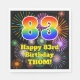 Ce design captivant et gai de papier d'anniversaire est doté d'un grand nombre de "83" avec un dégradé coloré du spectre arc-en-ciel inspiré motif, avec le message "Happy 83rd Birthday," et un nom personnalisé. L'arrière - plan présente un motif coloré inspiré par les feux d'artifice de la fête. Des serviettes en papier comme celle-ci peuvent être utilisées pour célébrer le quatre-vingt-troisième anniversaire de quelqu’un. [~Z0000574]