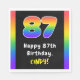 Ce design passionnant et joyeux sur le thème de l'anniversaire de la serviette en papier comprend le numéro "87" avec un motif multicolore inspiré du spectre arc-en-ciel, avec le message "Happy 87th Birthday," et un nom de destinataire personnalisé. Des serviettes en papier sur le thème de l’anniversaire comme celles-ci pourraient être utilisées lors d’une fête d’anniversaire célébrant le quatre-vingt-septième anniversaire de quelqu’un. [~Z0000629]