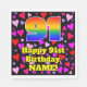 Cette conception joyeuse et joyeuse de serviette en papier à thème d'anniversaire comporte un grand nombre de "91" avec un motif inspiré par un gradient de spectre arc-en-ciel, ainsi que le message "Happy 91st Birthday,", et un nom personnalisable. L'arrière - plan présente un motif aux formes de coeur rose, rouge et violet. Des serviettes en papier amoureuses et heureuses comme celle-ci pourraient être amusantes à avoir lors d’une fête d’anniversaire pour honorer le quatre-vingt-dix-unième anniversaire de quelqu’un. [~Z0000550]