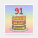Cette serviette en papier amusante et joyeuse à thème d'anniversaire présente une représentation de dessin animé d'un gâteau d'anniversaire à trois niveaux avec des bougies en forme de chiffres sur le dessus montrant le numéro "91", avec le message "HAPPY 91ST BIRTHDAY", et un nom de destinataire personnalisé. L'arrière - plan a un motif multicolore pastel en arc-en-ciel inspiré du spectre dégradé. Des serviettes en papier comme celles-ci pourraient être utilisées pour organiser une fête pour quelqu'un en l'honneur de son 91e anniversaire. [~Z0000623]